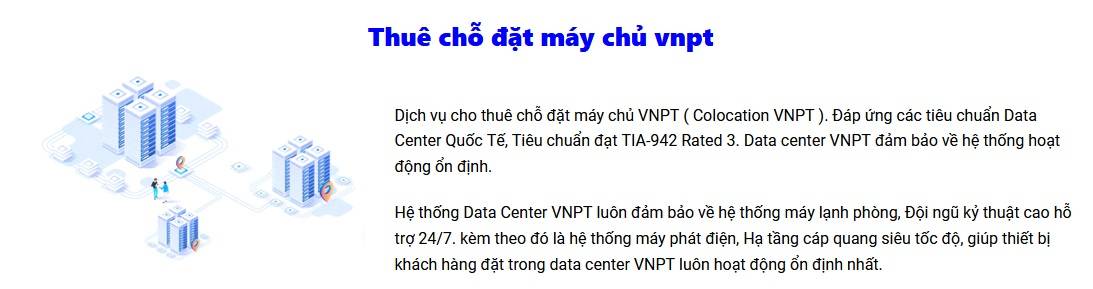 Là dịch vụ cung cấp chỗ đặt máy chủ trong data center của VNPT. Khách hàng đem máy chủ của đơn vị mình vào đặt trong tủ Rack của VNPT.