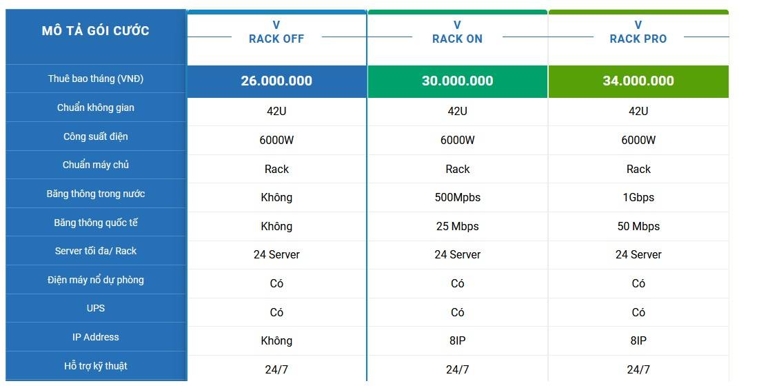 BẢNG GIÁ CHO THUÊ TỦ RACK DATA CENTER VNPT