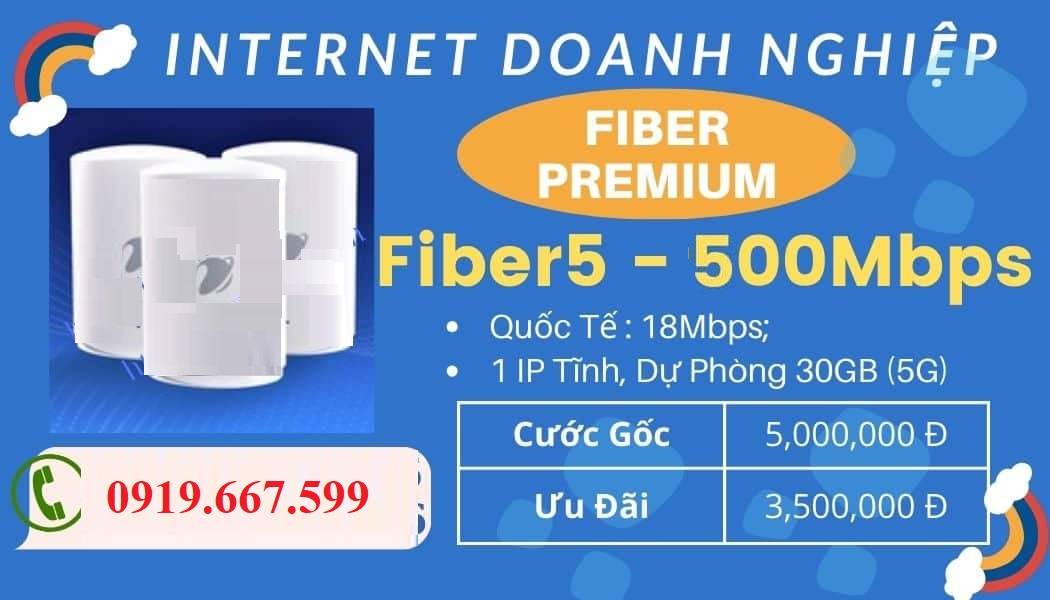 Fiber5 là gói cước nằm trong nhóm các gói Internet Doanh Nghiệp của VNPT. Với tốc độ 500 Mbps, không những tiết kiệm chi phí mà còn đảm bảo cho khách hàng về cam kết băng thông quốc tế tối thiểu lên đến 24 Mbps.