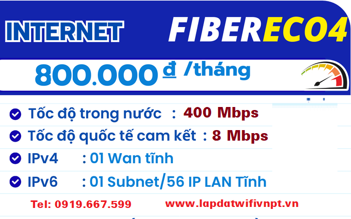 - Fiber Eco 4 Cam kết băng thông quốc tế tối thiểu 8 Mbps