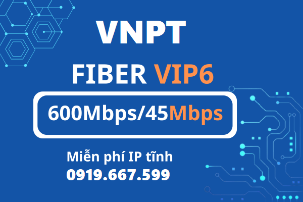 Fiber Vip 6 là gói cước nằm trong nhóm các gói Internet Doanh Nghiệp của VNPT. Với tốc độ 600 Mbps, không những tiết kiệm chi phí mà còn đảm bảo cho khách hàng về cam kết băng thông quốc tế tối thiểu lên đến 45 Mbps.