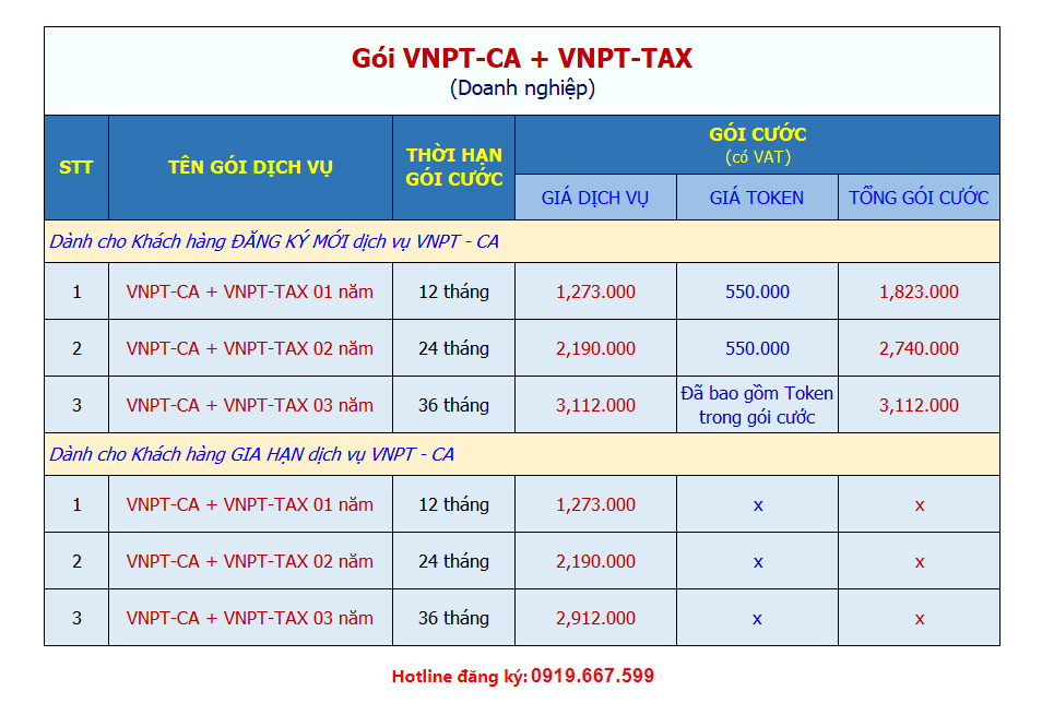 BẢNG GIÁ PHẦN MỀM KÊ KHAI THUẾ VNPT TAX