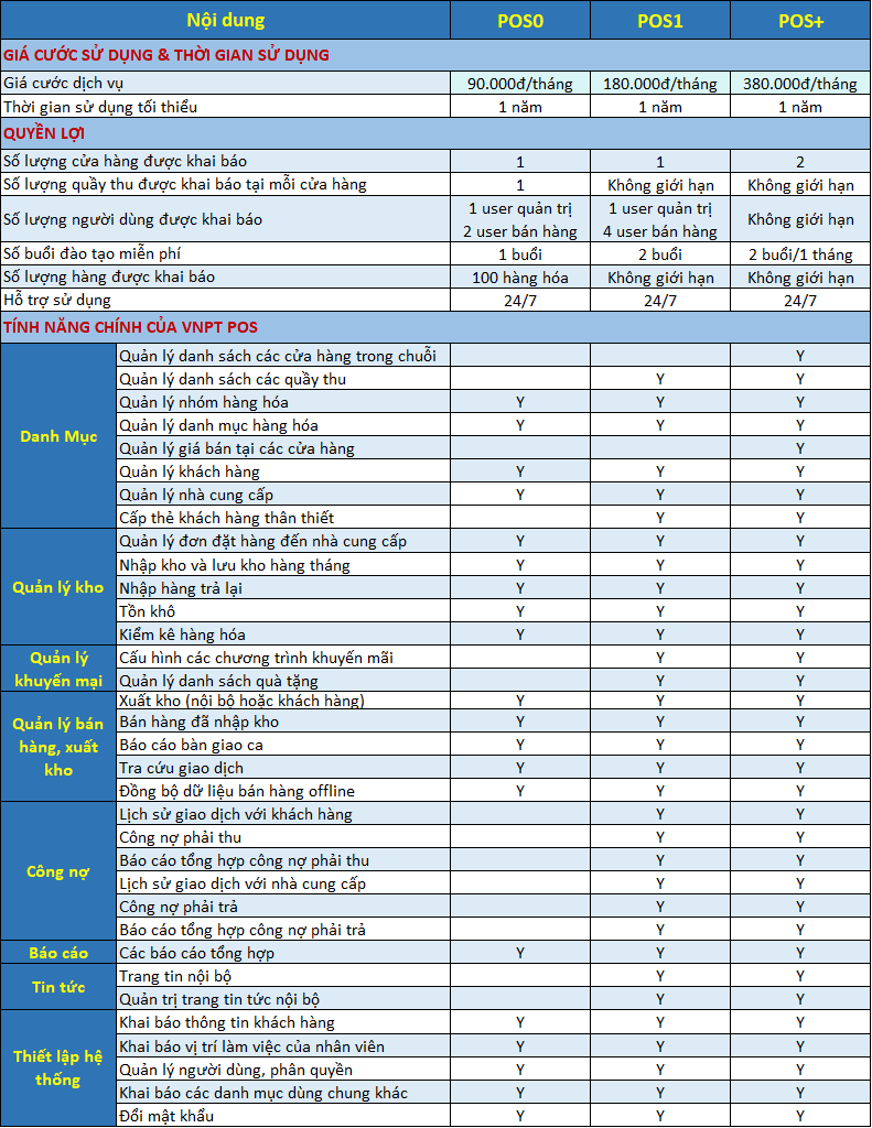 Sau đây là bảng giá tham khảo về dịch vụ VNPT Pharmacy