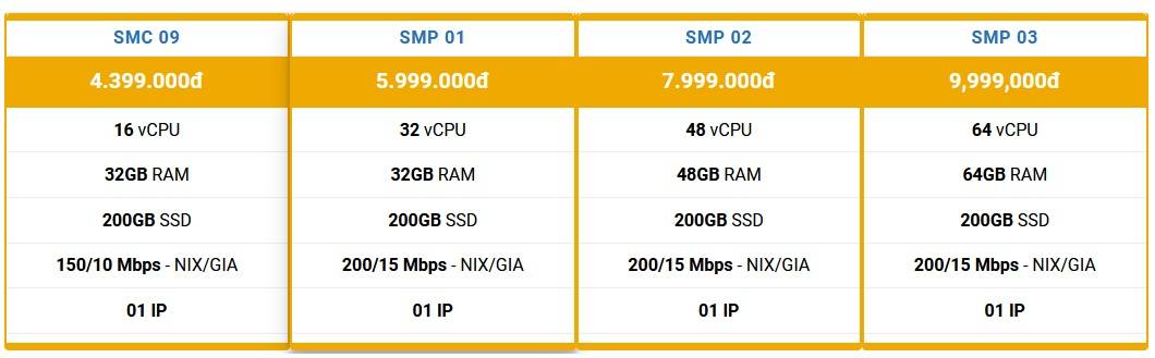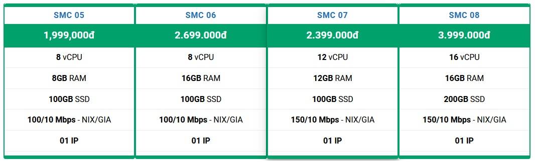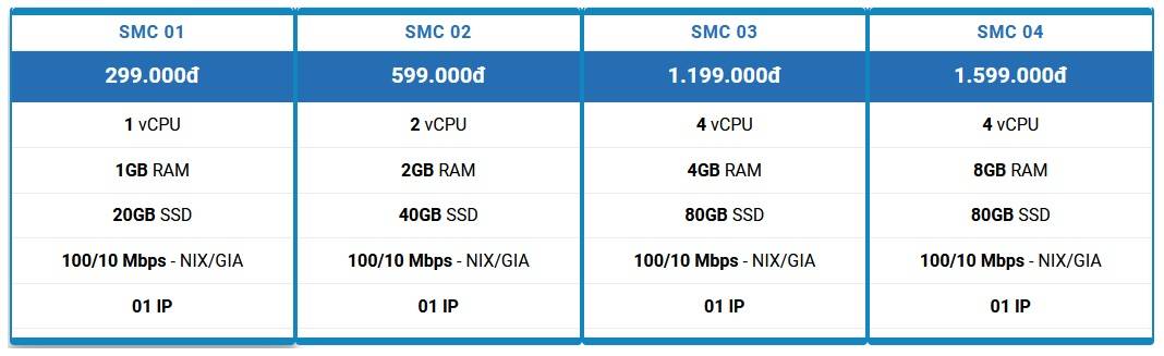 Bảng giá máy chủ ảo VNPT – Smart Cloud